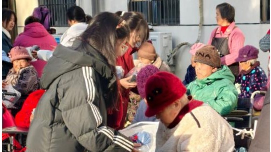 冬日暖阳照,温情暖人心。2025年12月14日,合肥职业技术学院医学院第四党支部周璇老师带领智慧健康养老服务与管理专业张瑶等8位学生,走进洗耳池社区长者之家养老院,开展一场充满温情的志愿献爱心活动,为老人们送去冬日的关怀与欢乐。