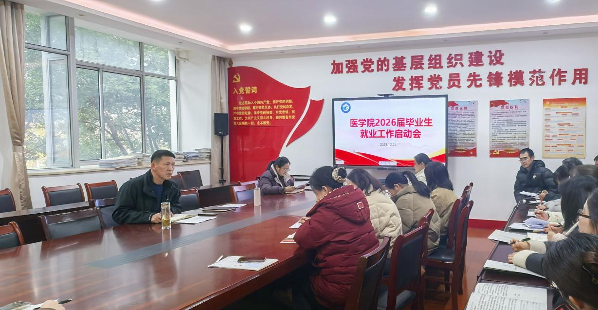 为积极应对当前复杂严峻的就业形势,精准推进毕业生就业工作落地见效,12月24日下午,医学院在党员活动室召开2026届毕业生就业工作启动会。医学院党政班子、2026届毕业班辅导员参加会议,会议由医学院党总支副书记(主持工作)邹华兵主持。