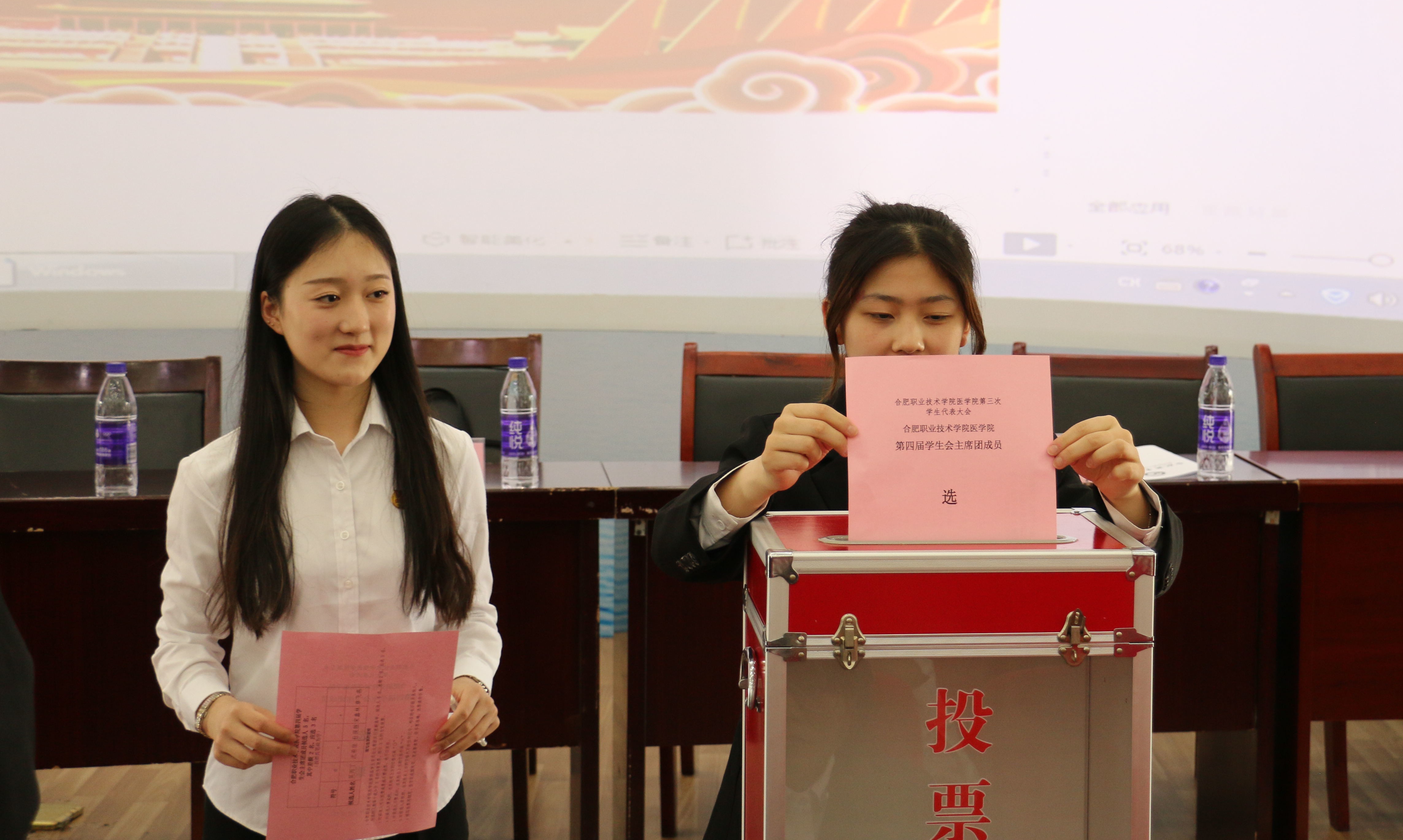 合肥职业技术学院医学院第三次学生代表大会在团歌声中画上圆满句号。医学院学生会将一如既往秉承全心全意为同学们服务的根本宗旨,紧密围绕学校中心工作,团结和凝聚医学院学子听党话、跟党走,贯彻“崇德 重技 求实 创新”的校训,珍惜青春,汇聚力量,坚定理想信念、勇担历史使命,在冲刺职教本科、实现中华民族伟大复兴中国梦的征途上谱写青春华章!