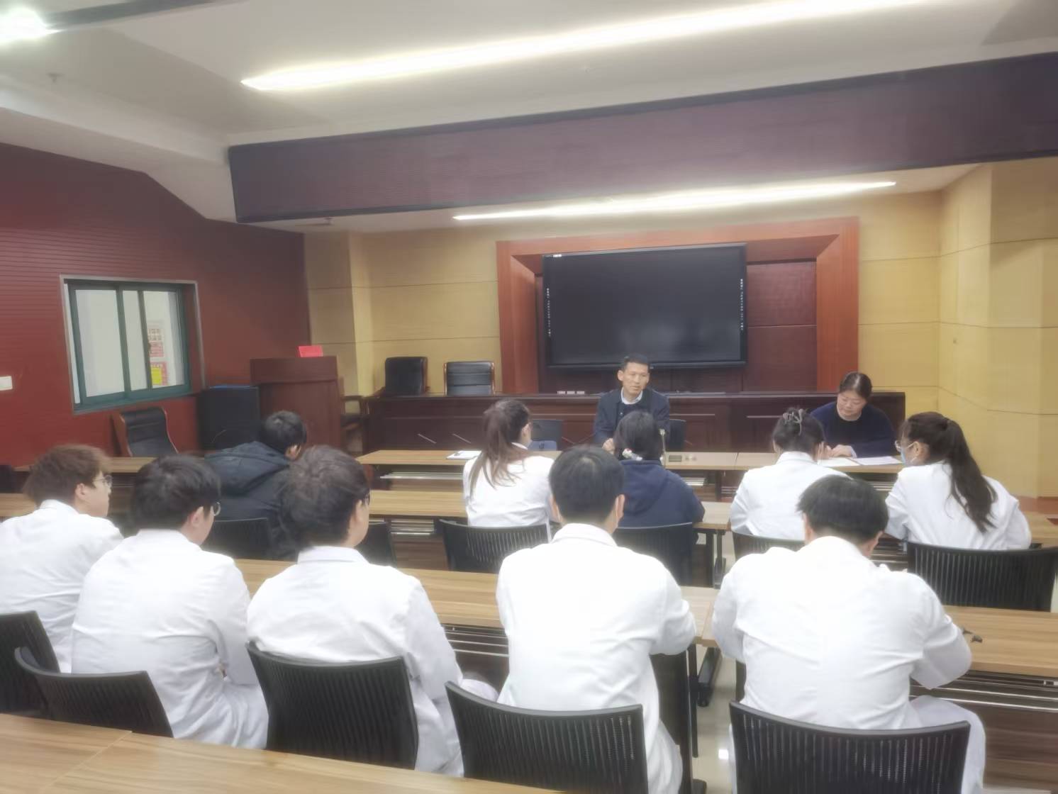 在交流环节,实习生们踊跃发言,分享了在含山县人民医院的实习体会。大家普遍认为,医院带教老师责任心强、教学耐心细致,不仅倾囊相授临床经验,还在职业规划上给予悉心指导。一位实习生表示:“带教老师会结合典型病例,手把手教我们问诊、查体、书写病历,让我们对理论知识有了更直观的理解,实践技能提升很快。”现场调查显示,学生对医院的带教工作、实习环境满意度高,对实践技能培养方面的成效更是给予了充分肯定。