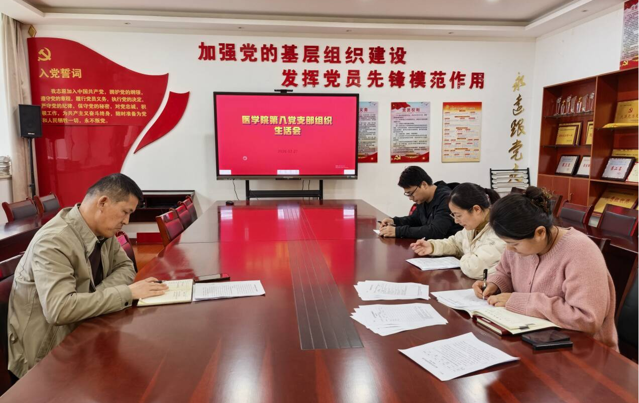 3月27日下午,医学院第八党支部在医学楼党员活动室召开2025年度组织生活会暨民主评议党员大会。医学院党总支副书记邹华兵到会指导,支部书记孙亚萍主持会议,支部在岗正式党员现场参会,学生党员线上同步参会。