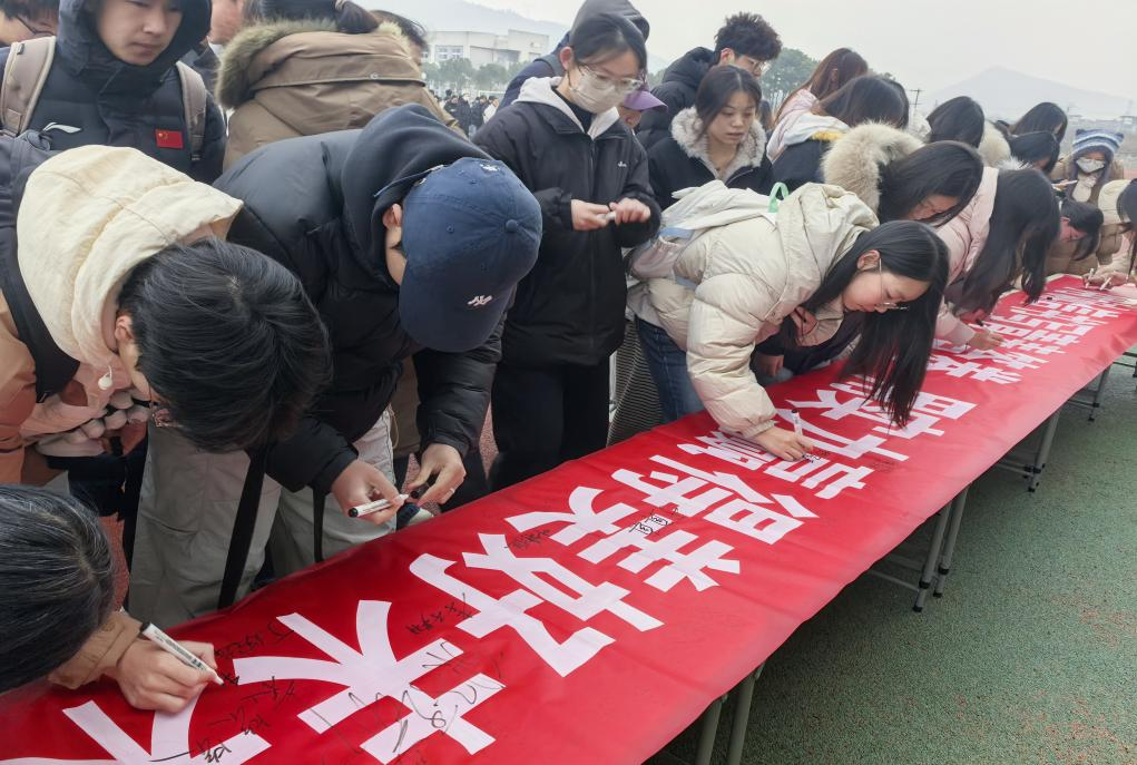 为了进一步强化诚信应考的意识,活动现场还举行了诚信考试签名活动。同学们纷纷在用诚信书写青春答卷,用实力赢得美好未来的横幅上郑重签名,承诺自觉遵守考场纪律,以诚实的态度迎接期末考试的到来。